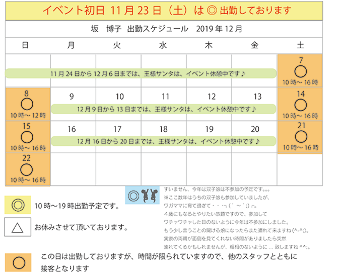 - スタッフ出勤カレンダー #スタッフよりコメント